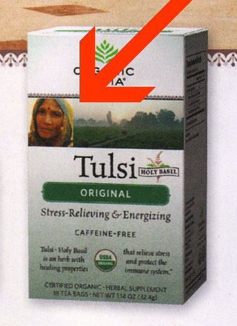 Of course, Organic India is no dummy. They know the average white-linen-clad meditator is no fool. That’s why there’s a little rustic-looking brown woman on the cover of the Organic India box.