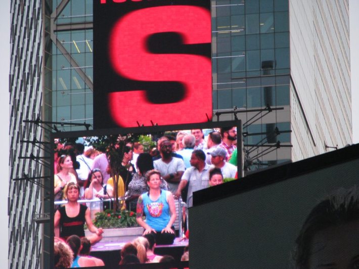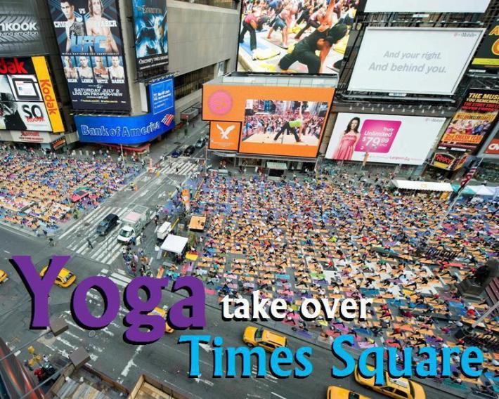 QUESTION: Is the above photo a representation of yoga “taking over” Times Square, or does it represent mainstream yogilebrity culture’s total reinforcing of Times Square? I’m going with the latter. For, I’m not sure what classifies a big take-over these days, but, apparently, you get a lot of capitalist schwag when it happens: