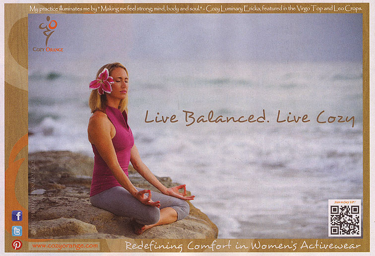 “Founded on yogic principles and symbolized by the powerful balancing posture, Vriksha Asana, or Tree Pose, the Cozy Orange brand spirit is rooted in optimism and compassion to help encourage wellness, happiness and alignment of the mind and body through the daily practice of yoga and exercise in comfortable bliss.”