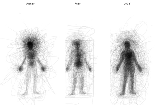Visual response to the quesyion "Where do you feel x in your body?" emotionallyvague.com