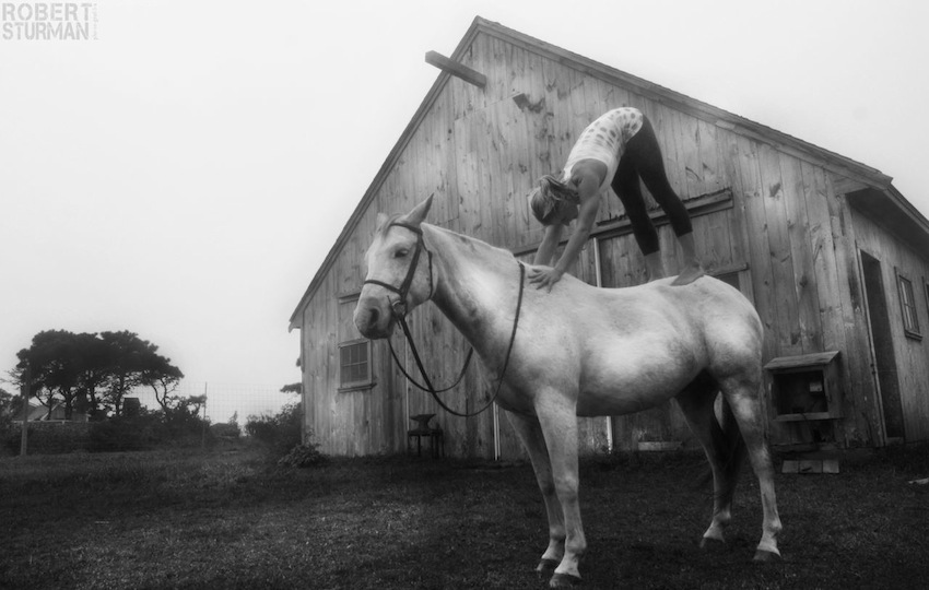 Horses are majestic beasts, with fancy names like Adios Butler, Whistlejacket, Mr. Prospector, Smarty Jones, and Lady Suffolk. So, check it. Just ’cause the one above ain’t sending you to the hospital with a back-kick to the breadbasket, doesn’t mean she’s on board with this tom foolery. Plus, there’s no way that down dog is doing a damn thing except make all of our nipples itch that you’re gonna slip off that horse’s silky back and end up like everyone else who’s fallen off a horse. No bueno.